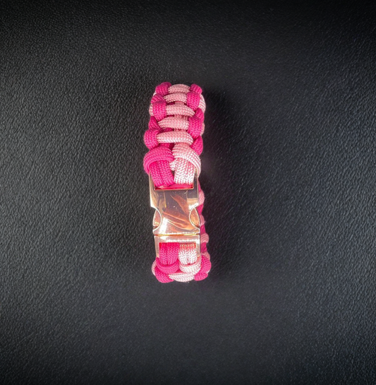 Collare in Paracord 25 cm Fucsia e Rosa Baby con chiusura in acciaio Rose Gold
